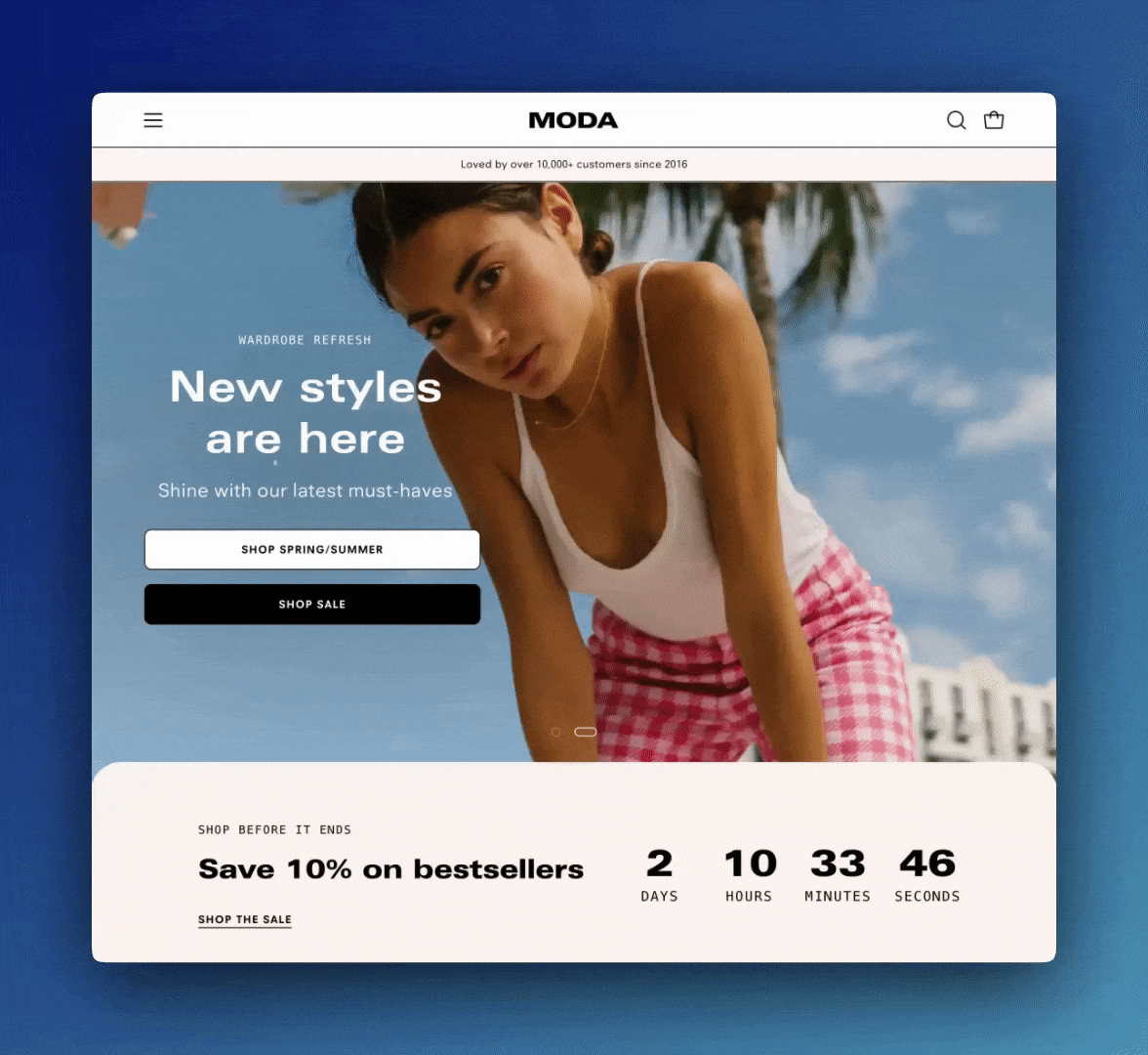 We've added animation improvements for the "Grid" section. The zoom animation of the product grid images appears once the section is mostly in view and on hover.